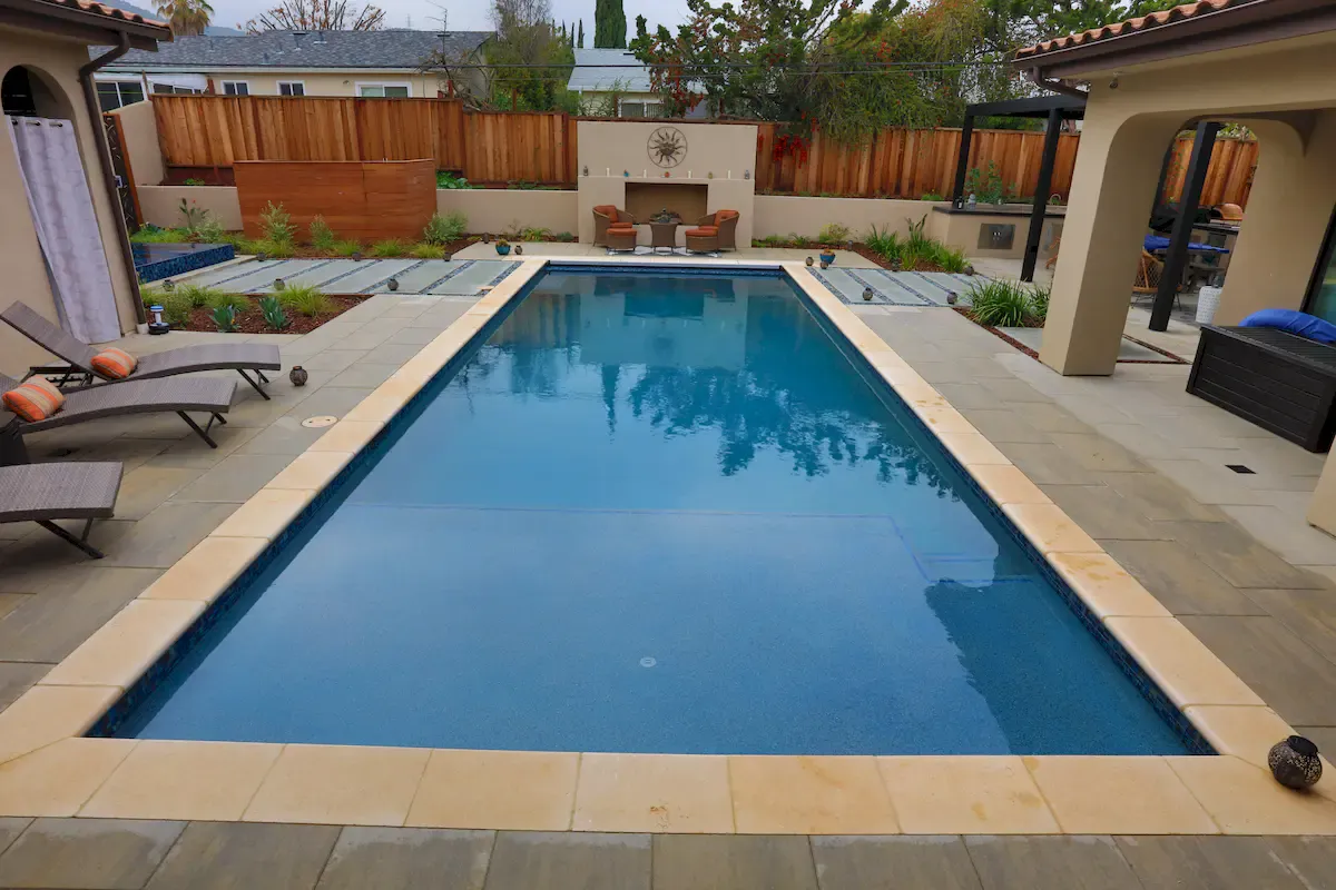 Every line item in your proposal has its own price. No bundled pricing that hides where the money goes. Two showrooms give you hands-on access to materials before construction starts. Our San Jose showroom at 2258 Camden Ave is the only outdoor pool showroom in the Bay Area. Our Pleasanton showroom at 3675 Old Santa Rita Road offers the same design consultation experience indoors.